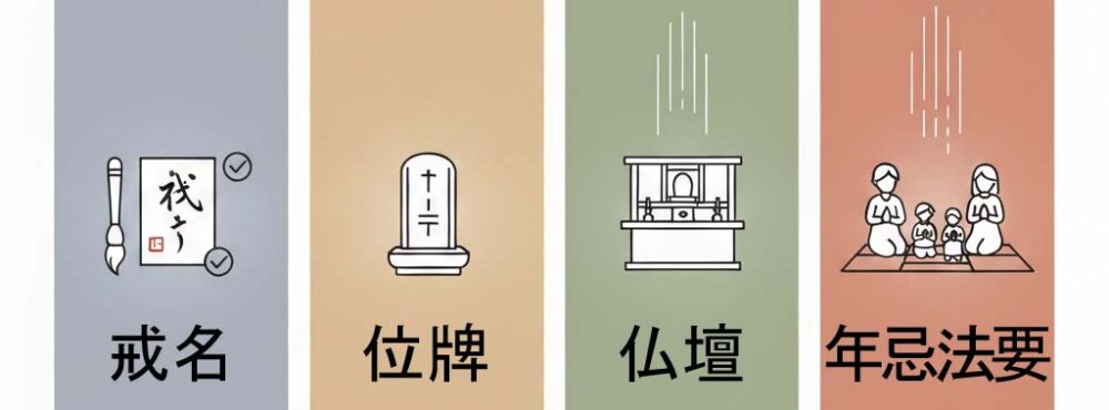 • 仏教の基礎:仏教の考え方や、仏壇にまつわる作法など、仏教の基礎的な知識を学ぶことができます。