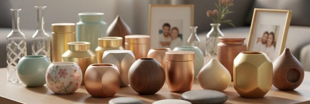 手のひらに収まるほどの、デザイン性の高い小さな骨壺です。陶器、ガラス、金属、木製など素材も様々で、一見して骨壺とは分からない、おしゃれなものが増えています。 - 費用目安: 1万円~5万円